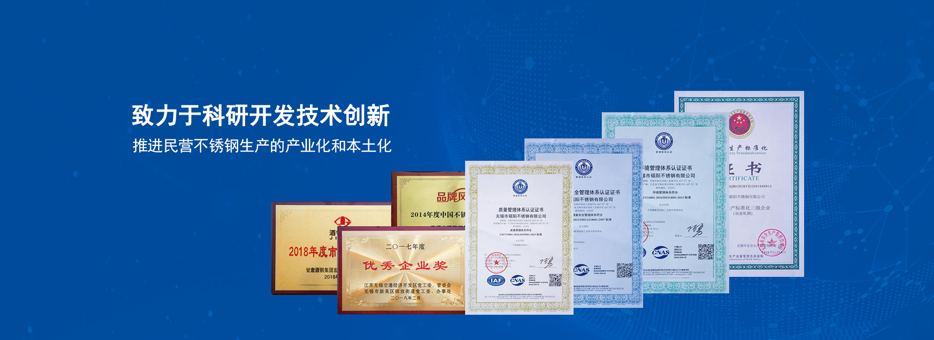 專注不銹鋼研發(fā)生產(chǎn)銷售一站式服務(wù)無錫市碩陽不銹鋼有限公司是由無錫市宏展不銹鋼有限公司和香港嘉勝五金公司共同投資創(chuàng)建,公司成立于2004年。注冊資金3億元,占地200畝,擁有員工450人,高級技工100人。公司主要設(shè)備有:酸洗退火線1條、罩式退火爐20臺、修磨機機組線1條、二十輥可逆軋機2臺、平整機2臺、立式退火爐2臺、縱剪機3臺、重卷機1臺、圓片機沖剪1臺。主要生產(chǎn)產(chǎn)品不銹鋼:304、201、430、410s...